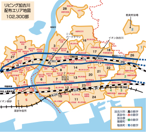 「リビング・クルー」と呼ばれる配布スタッフが、1人300部~500部をポスティングしており、リビング・クルーが住む近隣の決められたエリアを配布しています。